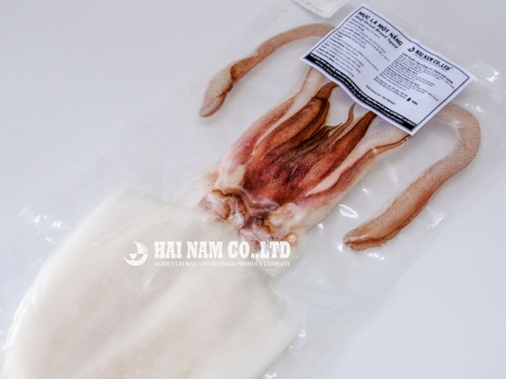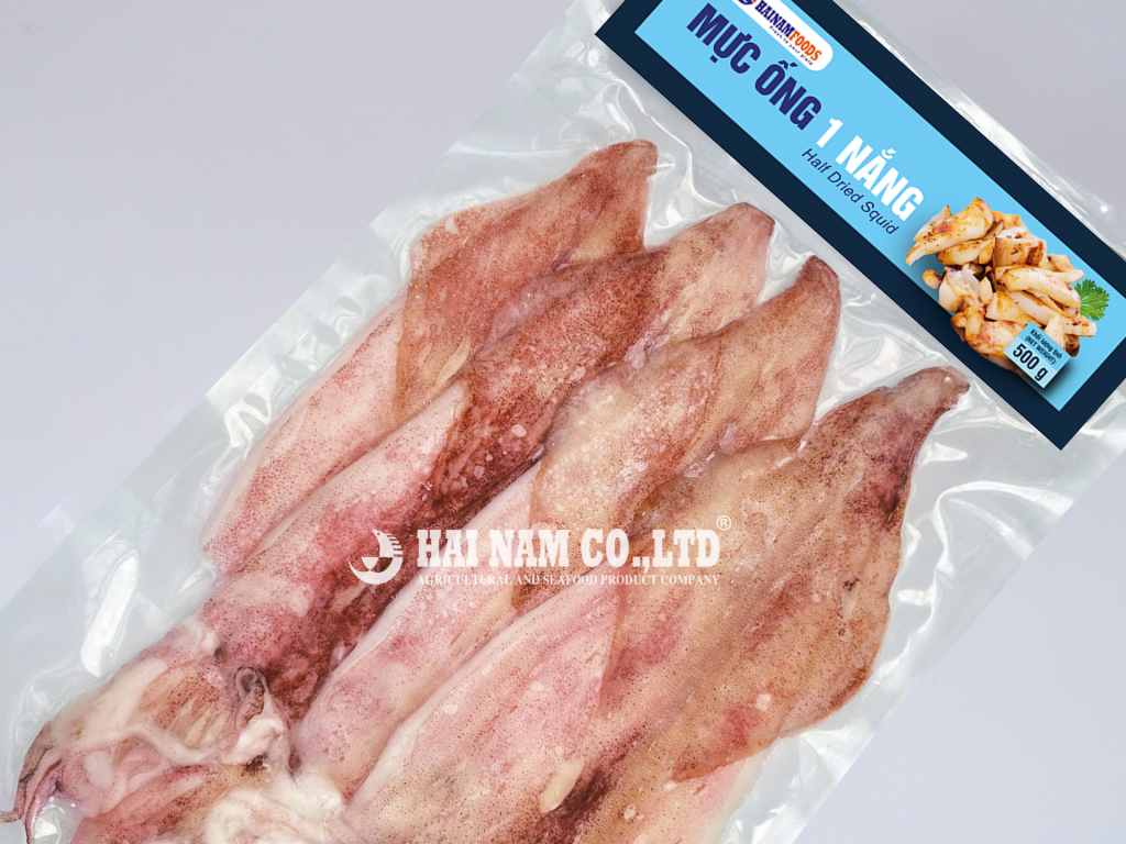 - Mực Ống Một Nắng Hải Nam Foods: Thân thon dài, thịt săn chắc, thơm ngon, dễ chế biến.